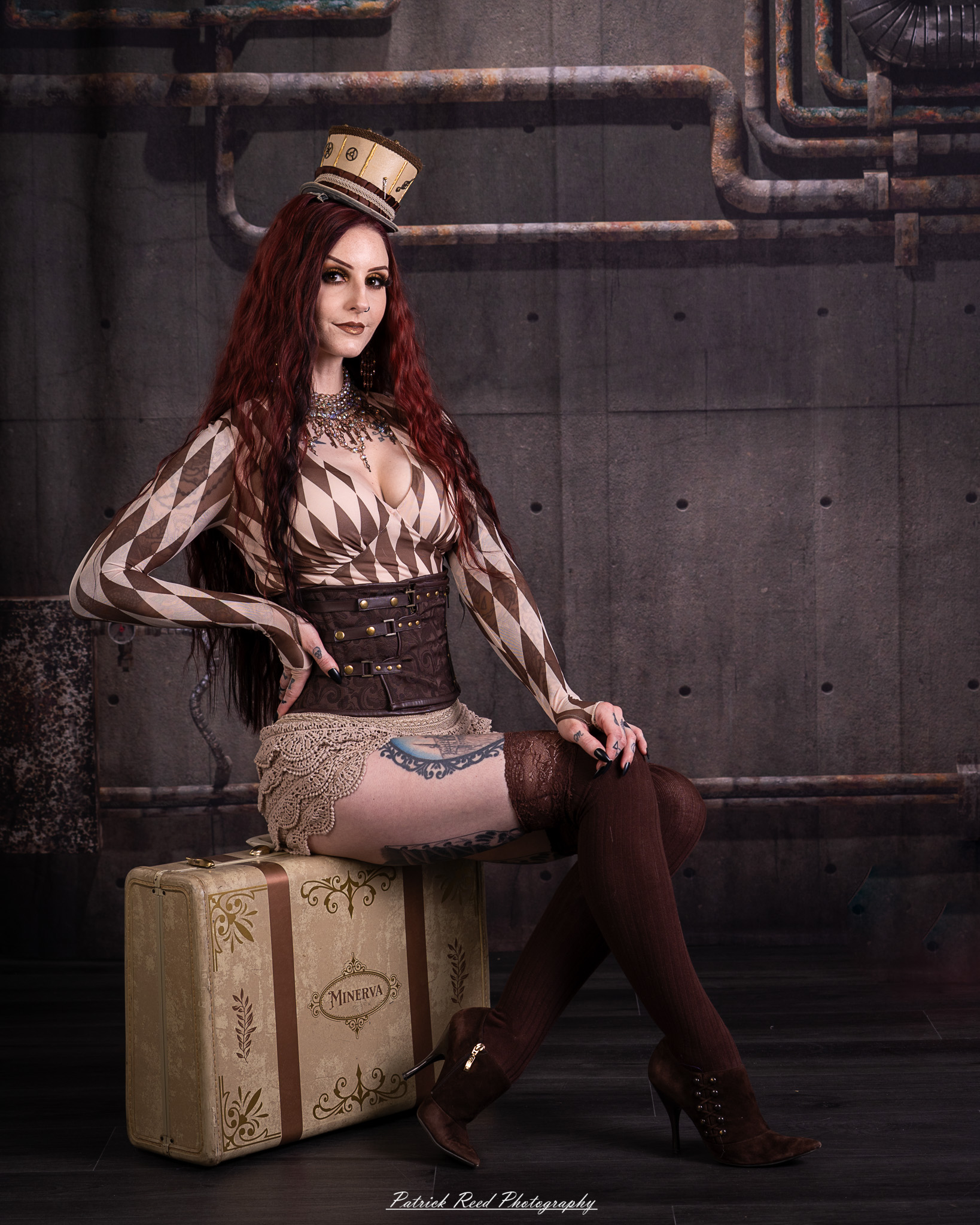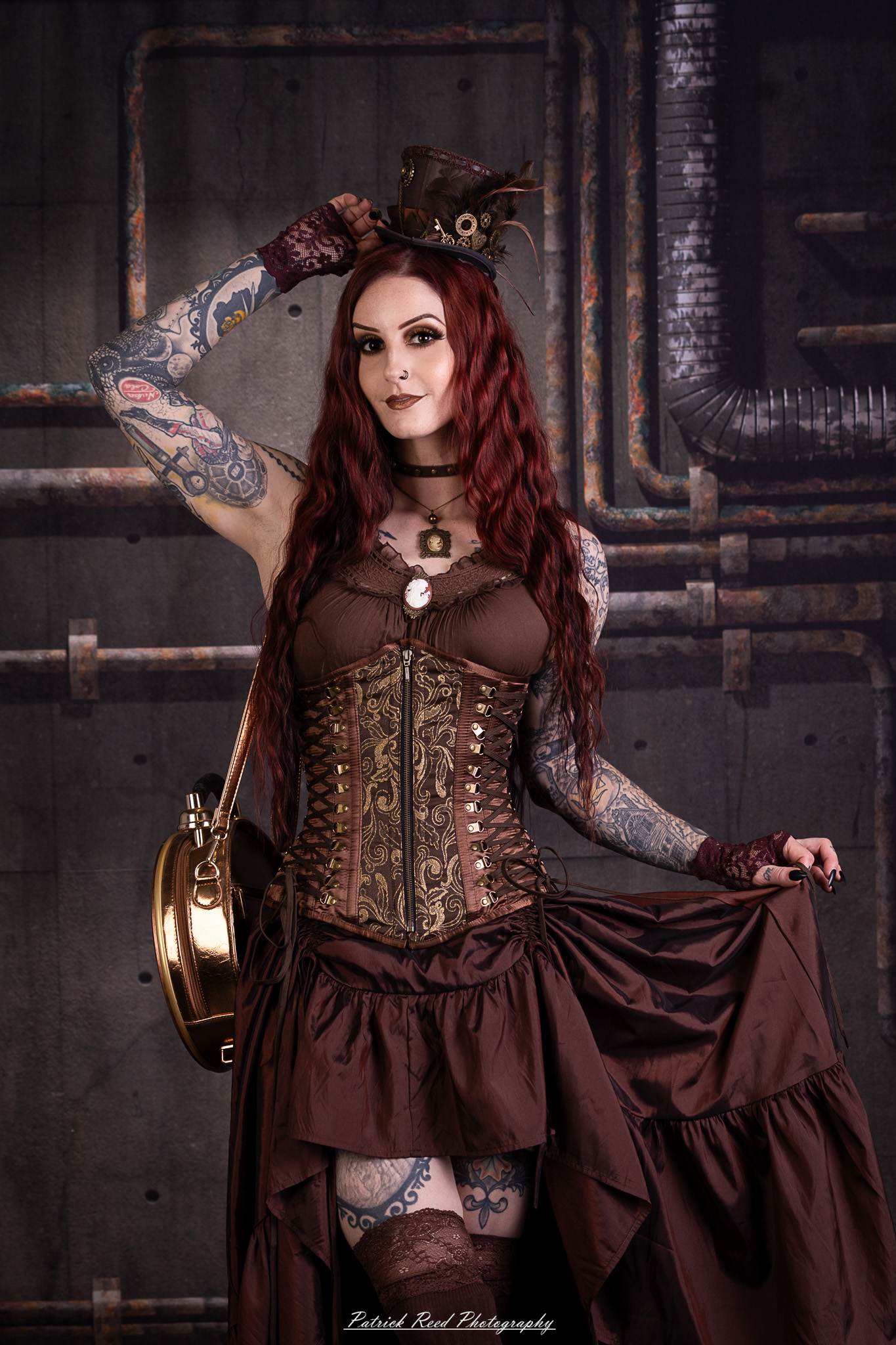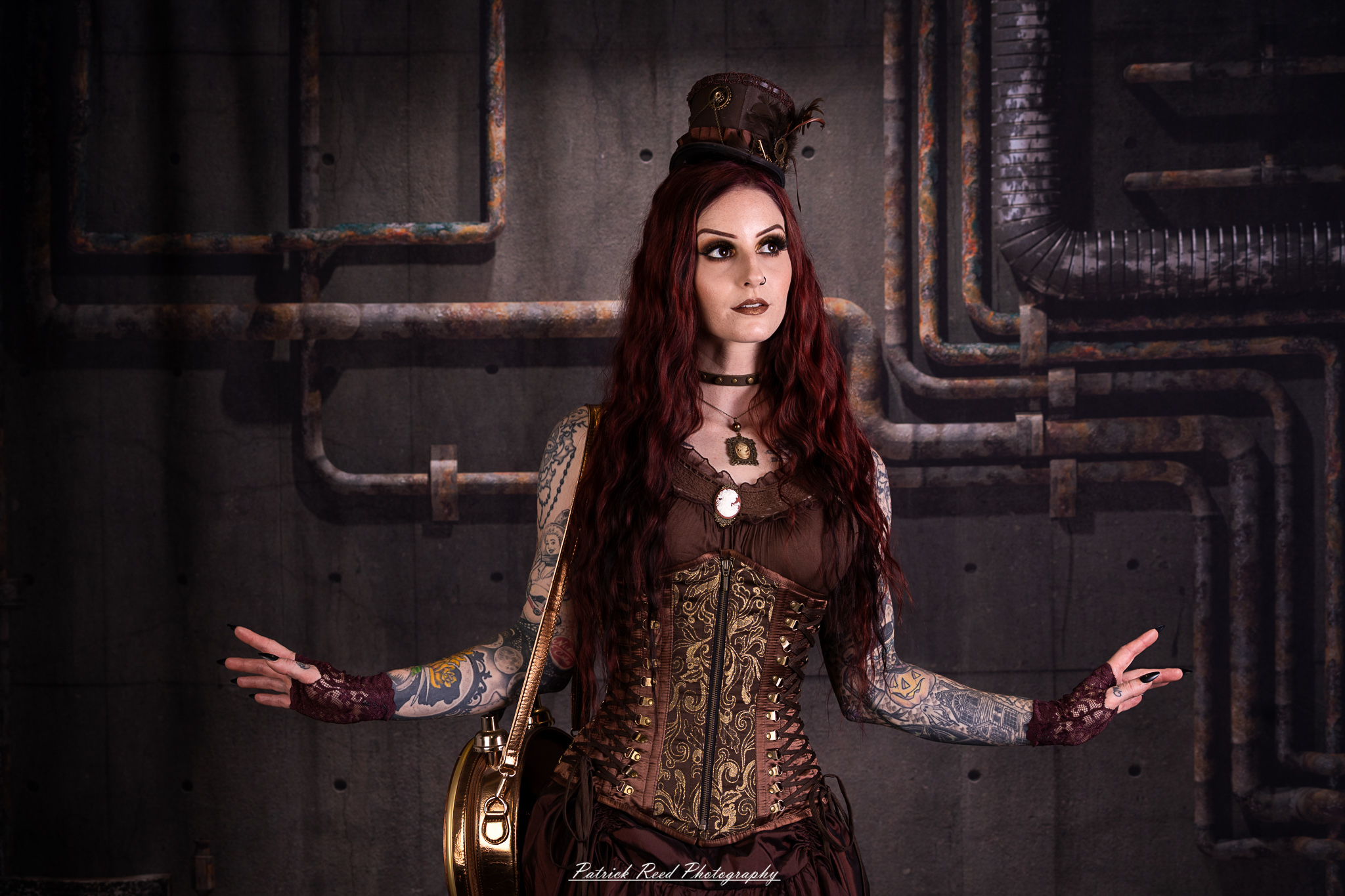 Usually, I walk away from studio night with 5-6 shots I really like out of 40-50 (about a 10% keeper rate). This time, I had a hard time cutting any. I ended up keeping 29 out of 120 – nearly a 25% keeper rate. Some of that is probably because I think steampunk is really freaking cool, and some credit definitely goes to our model, Minerva, who brought three different outfits. But I also noticed that I just enjoyed the shoot more when I stopped screwing with the lighting settings and focused on composition.
